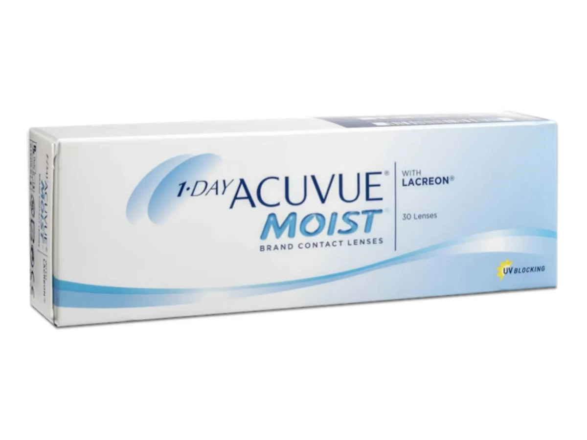 1-Day Acuvue Moist are daily disposable contact lenses from Johnson & Johnson Vision, designed to provide reliable vision and lasting comfort throughout the day. They are a convenient, hygienic option for single-day wear with a fresh pair every morning.